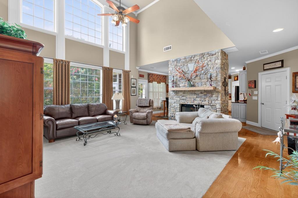 This Buford Beauty is Maintained to PERFECTION, Immaculate and MOVE-IN Ready!! Excellent Location in the Award-winning NEW Seckinger HS District! This is the Nation's FIRST AI-themed HS!! Amazing Features of this home include a Soaring 2 Story Family Room with Double Sided Wood Burning Stone Fireplace, Beautiful Updated Granite Kitchen with Hardwood Floors, Stainless Steel Appliances including Gas Range & Refrigerator, Tile Backsplash, Walk-in Pantry & View of the Fireplace!! The Warm Kitchen leads to a Bright and Airy Sunroom with newly installed Vertical Sliding Windows & Tile Flooring! Also, on the MAIN level is a convenient GUEST Bedroom and Full Bath, Formal Living Room (or OFFICE) & Banquet Size Dining Room w/Hardwood Floors! The Two Story Foyer also has Hardwood Floors and leads to an Upper-Level Spacious Owner's Suite with a Cozy Gas Fireplace! Enjoy your Gorgeous En-Suite Bath that has a Step-in Tile Shower with Rain Showerhead, Dual Vanities & Two Oversized Walk-In Closets!! Additionally, there are 3 very Spacious Secondary Bedrooms and a Full-Size Tiled Bath with Dual Vanities! Some FEATURES you'll LOVE are THREE CAR SIDE-ENTRY Garage with Painted Flooring & Utility Sink, Recently Painted Hardiplank Siding, Newer Roof (4yrs), Transferable Termite Bond, Ceiling Fans throughout, Custom Window Treatments & Security System! This Home has CURB APPEAL, situated on a Beautiful, Manicured Level Lot with a Private Backyard that includes a Firepit Patio perfect for relaxing and Entertaining! Ellsworth is a POPULAR Buford Swim/Tennis Community located just minutes from Lake Lanier and convenient to I-985 & I-85, Mall of Ga, and Top-Rated DINING and shopping! Don't miss this OPPORTUNITY to schedule your private tour TODAY to view this Buford Beauty in the Seckinger High School Cluster, known for INNOVATION and EXCELLENCE!